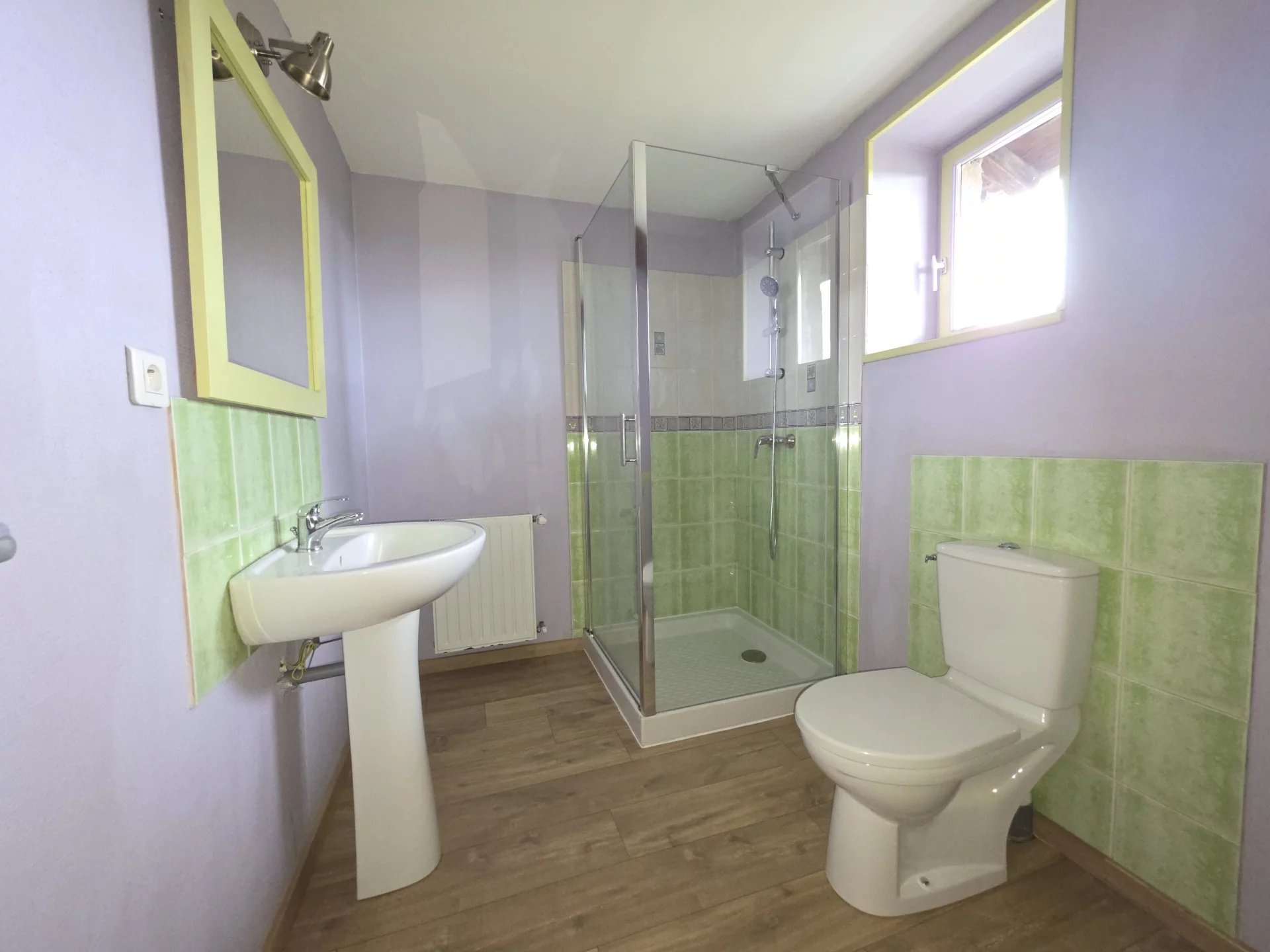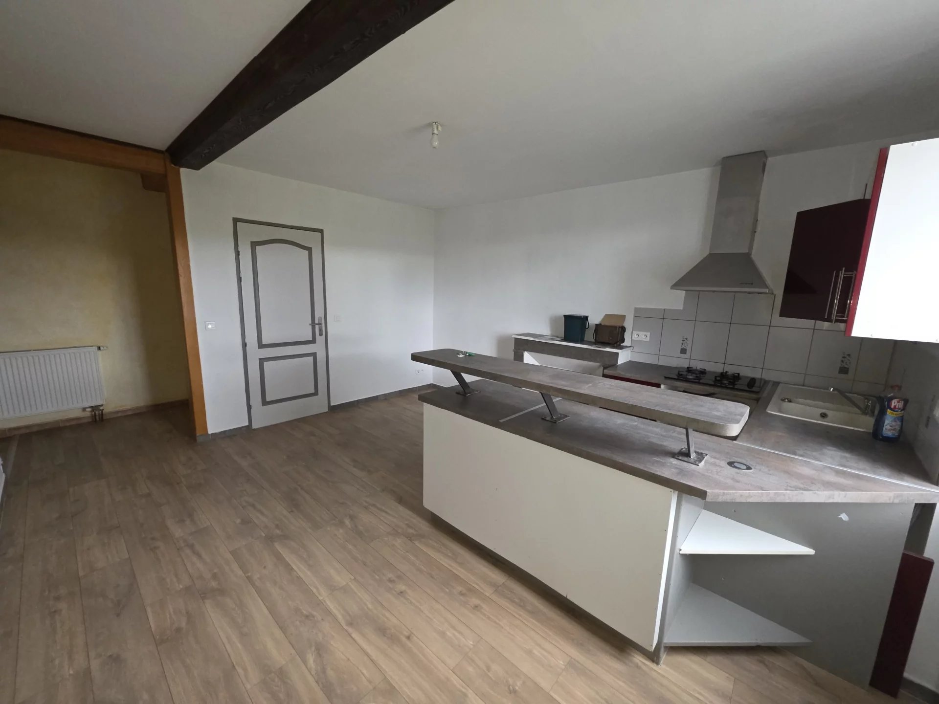 Dans un corps de ferme divisé en 2 lots, au 1er étage, appartement de type 6 duplex avec 3 chambres, de 101,75 m² desservie par cour commune et escalier commun en pierre pour deux logements. Il comprend au RDC 1 abri pour 2 voitures, 1 grande cave. Au 1er étage, une cuisine aménagée équipée (plaque, hotte), un dégagement desservant un salon, une salle d'eau avec toilette, une chambre avec placard. A l'étage, un dégagement desservant 2 chambres, une salle d'eau avec toilette, un bureau. La production de Chauffage et d'eau chaude est faite par une chaudière au gaz de ville.
