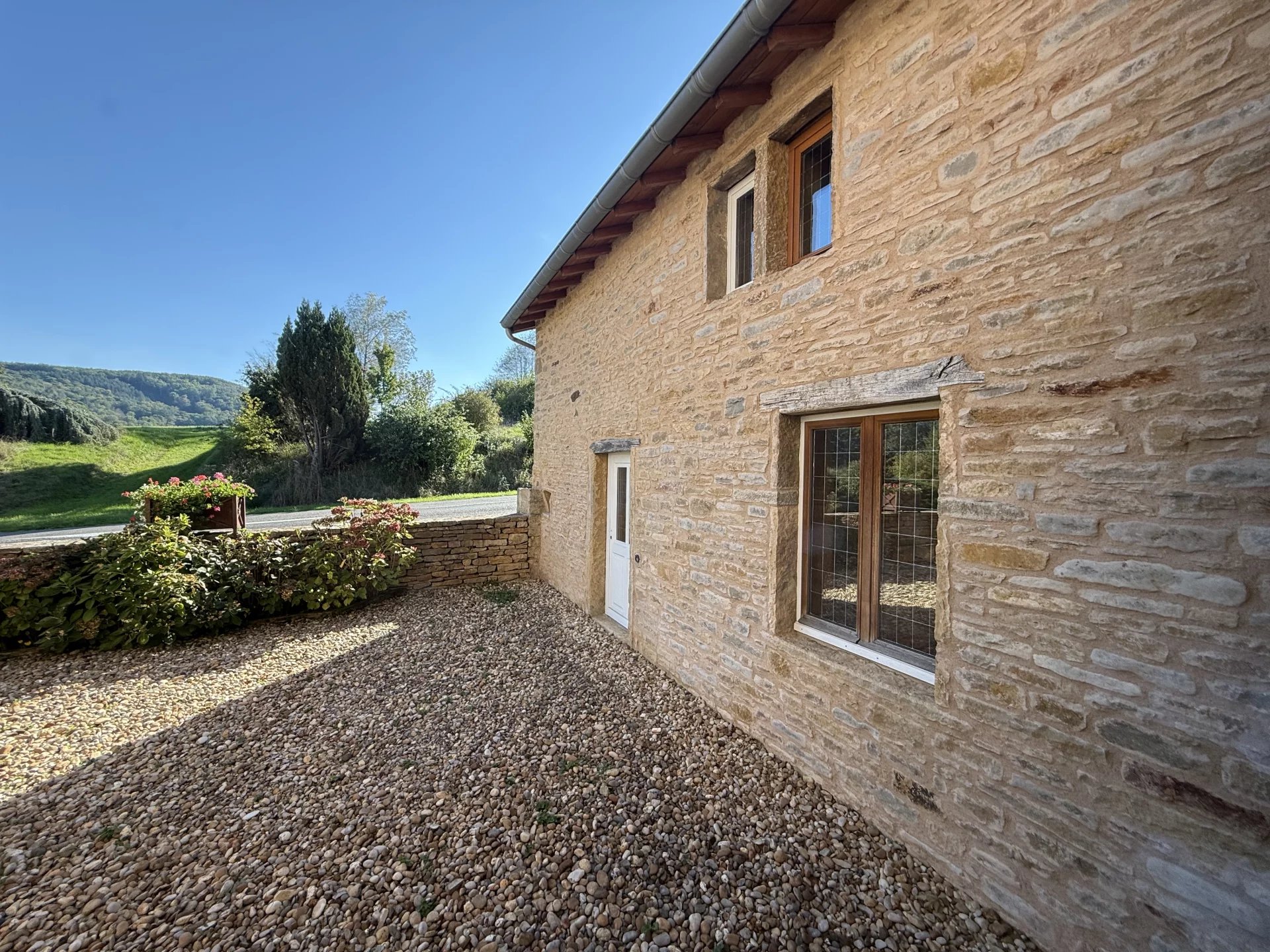 Dans un environnement campagne type bocage avec vue très dégagée. Maison traditionnelle en pierre sur un vaste terrain paysagé + un pré attenant de 1,5 hectare idéal chevaux.