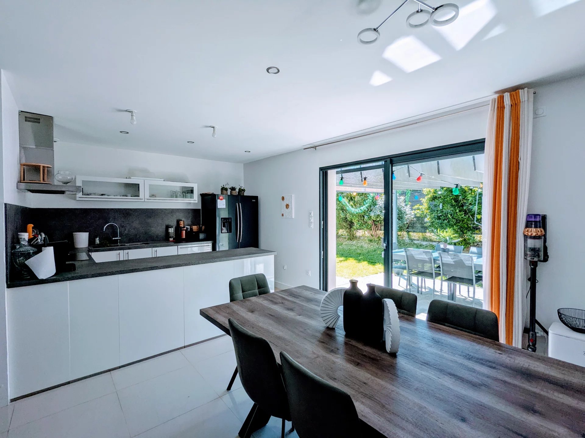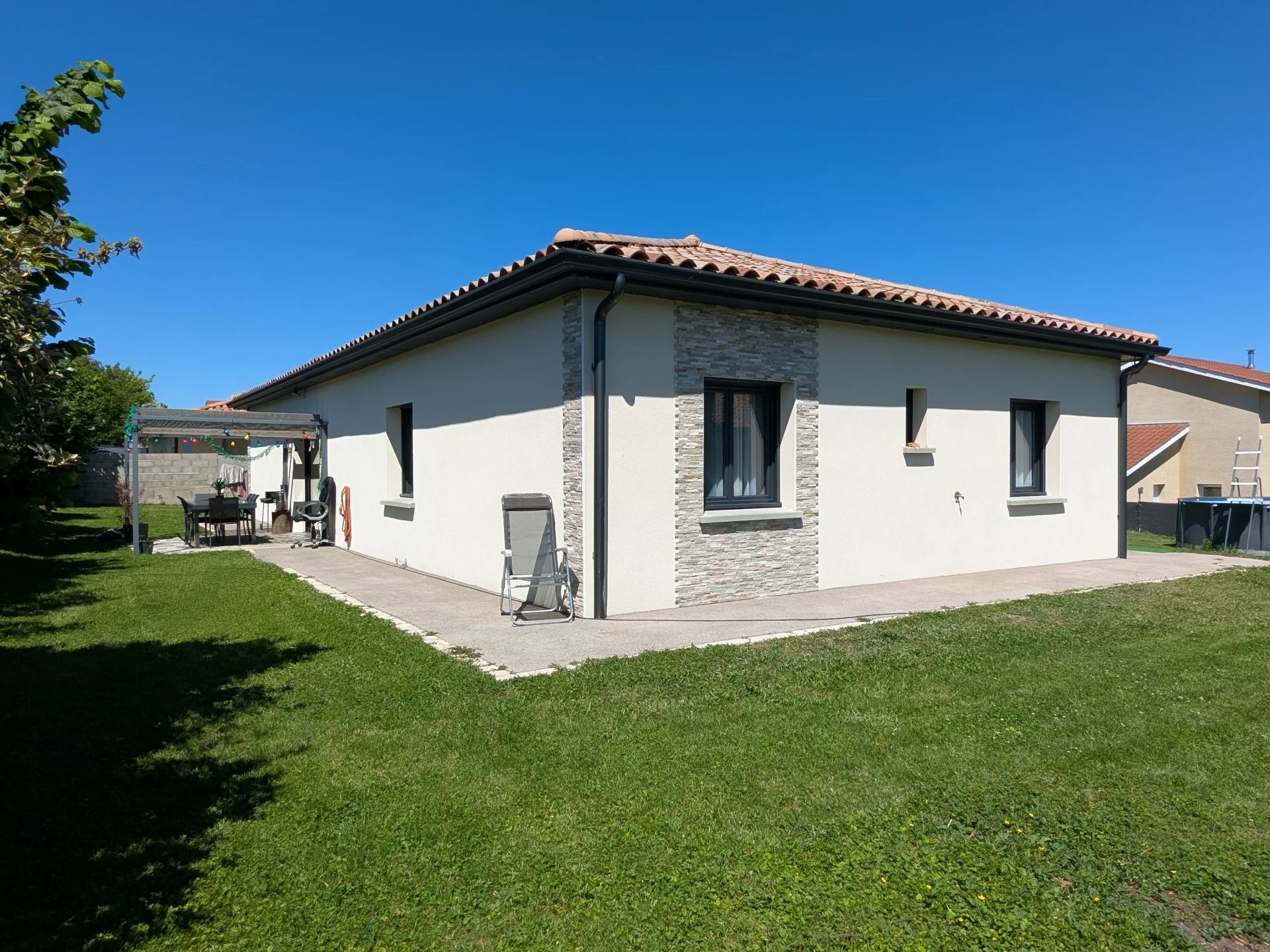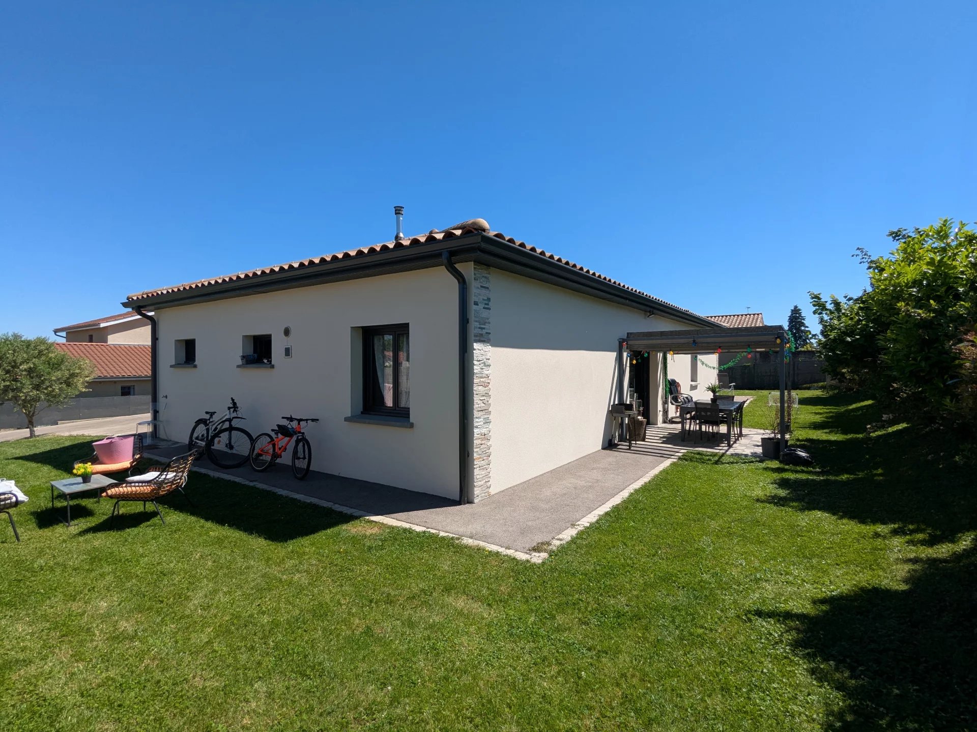 A proximité immédiate de Mâcon, près du centre du dynamique village de Sancé, dans un quartier résidentiel proche des commerces et écoles. Villa contemporaine de plain-pied, à la fois sobre et fonctionnelle. Séjour traversant, cuisine équipée ouverte, partie nuit avec 4 chambres carrelées (11 m², 12,2 m², 11,8 et 12,1 m²), grande salle de bains faïencée avec baignoire d'angle, WC indépendant avec lave-mains. Dressing 9,7 m². Garage carrelé isolé avec coin buanderie et portail automatique. Chauffage par poêle à granulés, chauffe-eau thermodynamique, menuiseries PVC, baies vitrées et volets roulants électriques télécommandés en aluminium. Terrain clos arboré de presque 1000 m², cour bitumée, portail électrique, interphone, fibre optique. Excellentes prestations, très bon état d'entretien. Si vous cherchez le confort d'une maison récente, venez la visiter !