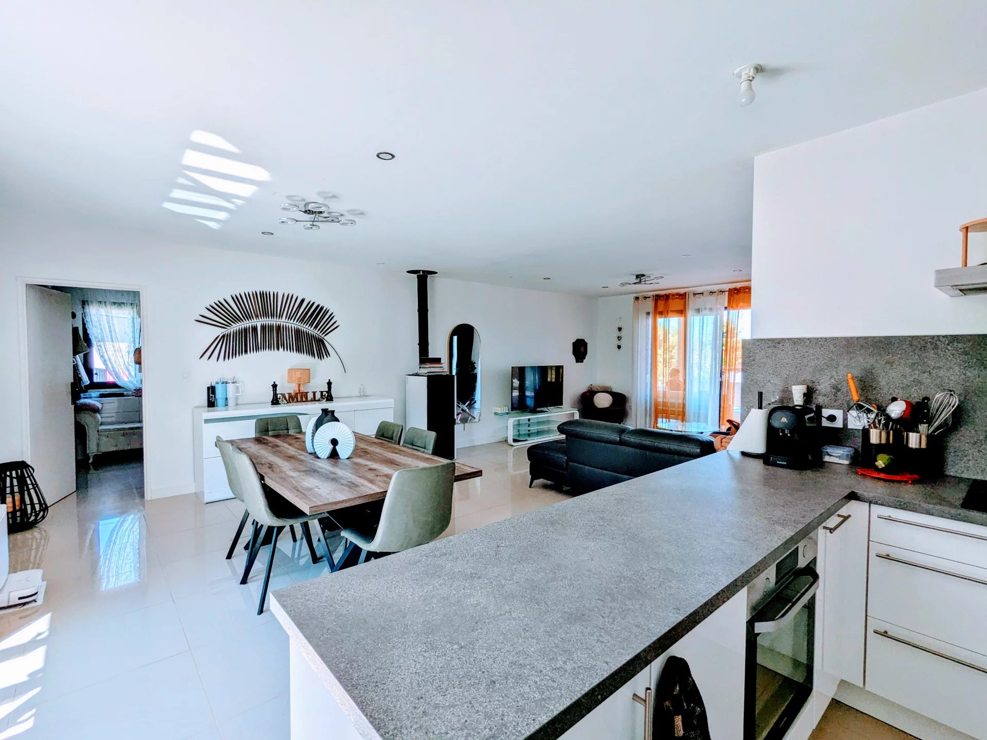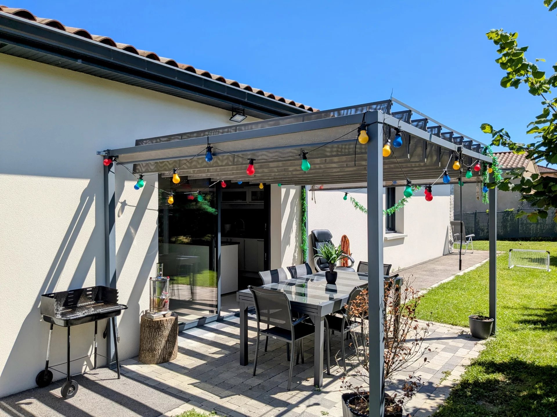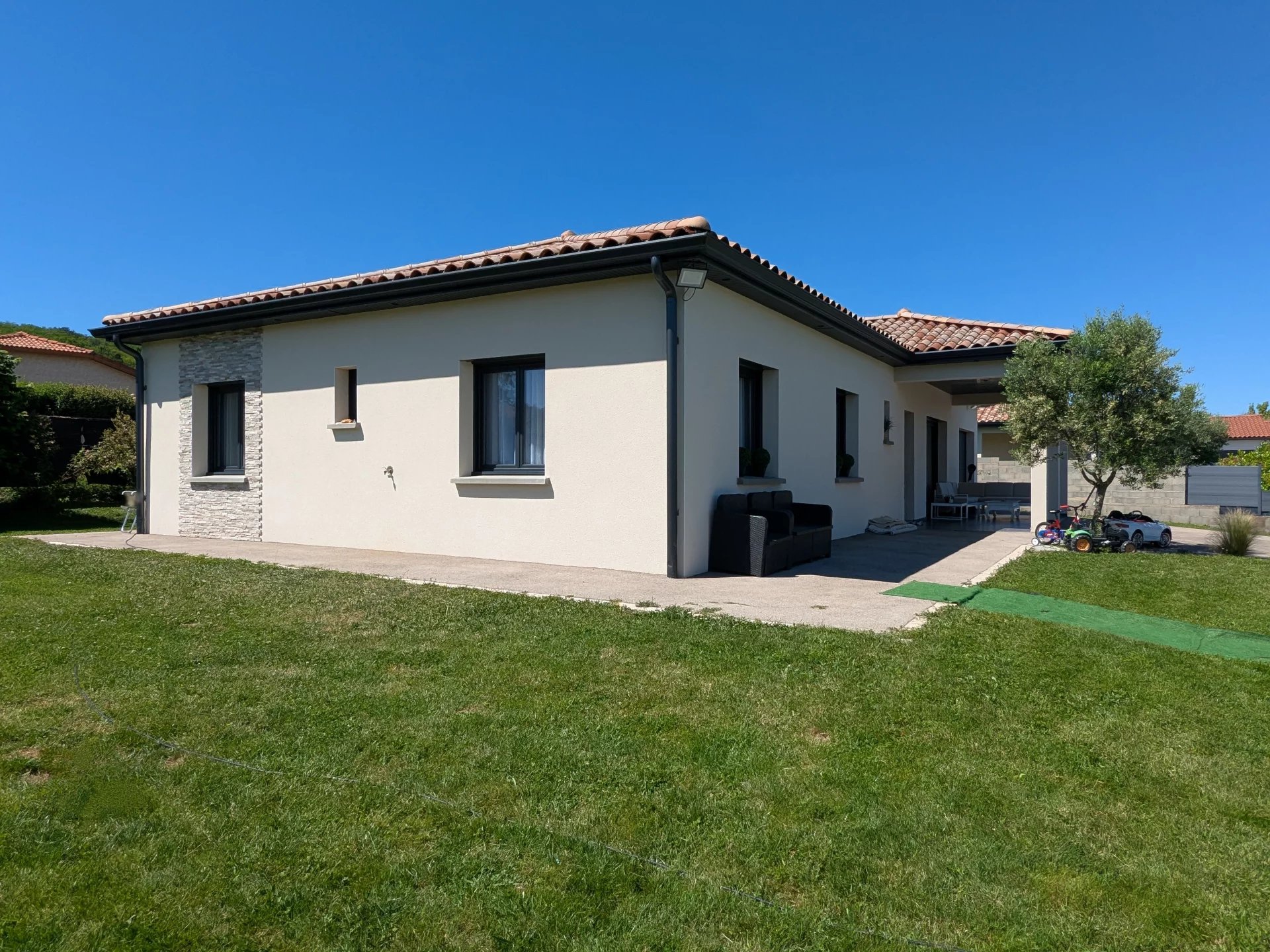 A proximité immédiate de Mâcon, près du centre du dynamique village de Sancé, dans un quartier résidentiel proche des commerces et écoles. Villa contemporaine de plain-pied, à la fois sobre et fonctionnelle. Séjour traversant, cuisine équipée ouverte, partie nuit avec 4 chambres carrelées (11 m², 12,2 m², 11,8 et 12,1 m²), grande salle de bains faïencée avec baignoire d'angle, WC indépendant avec lave-mains. Dressing 9,7 m². Garage carrelé isolé avec coin buanderie et portail automatique. Chauffage par poêle à granulés, chauffe-eau thermodynamique, menuiseries PVC, baies vitrées et volets roulants électriques télécommandés en aluminium. Terrain clos arboré de presque 1000 m², cour bitumée, portail électrique, interphone, fibre optique. Excellentes prestations, très bon état d'entretien. Si vous cherchez le confort d'une maison récente, venez la visiter !